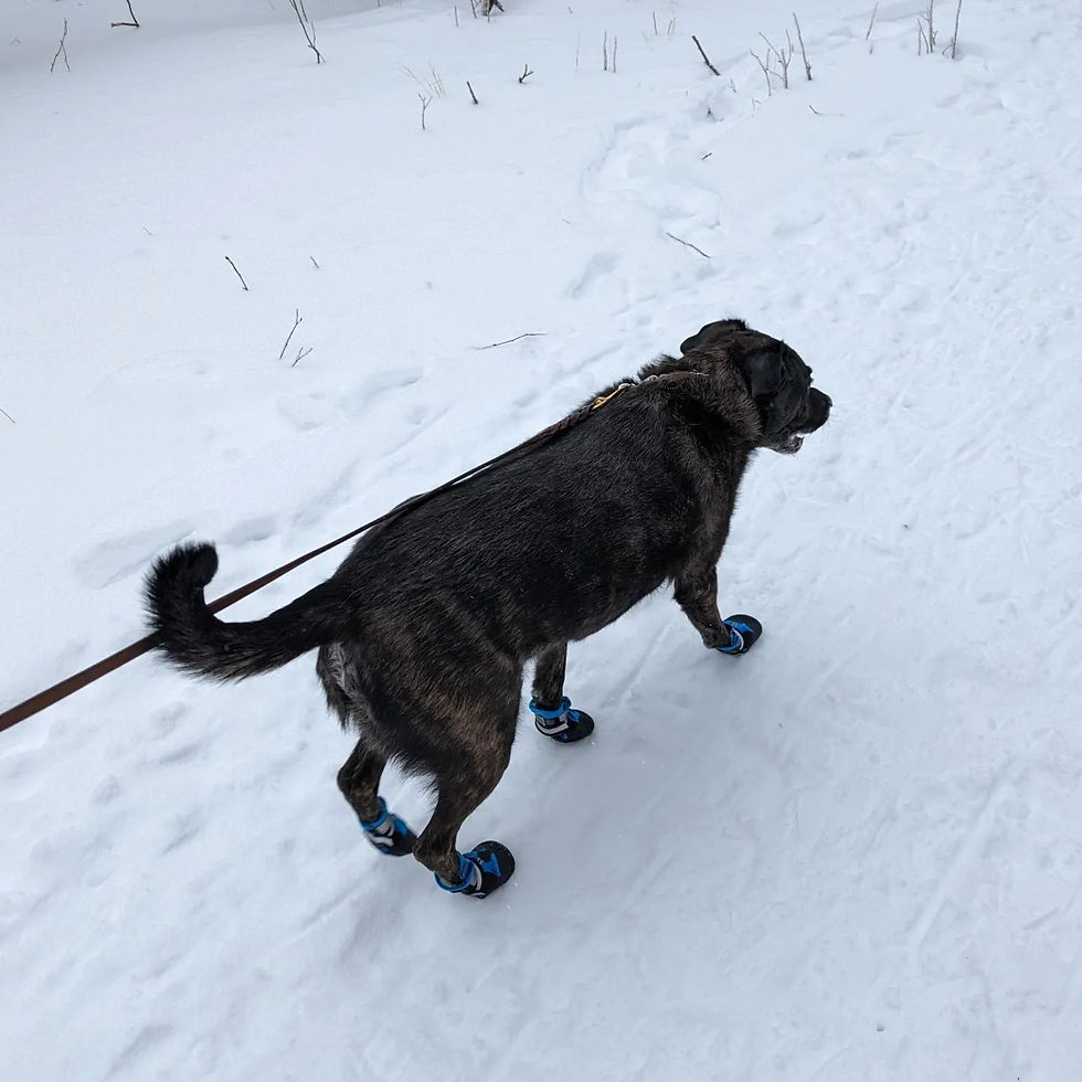 It was a lot colder than we expected! Duke, our 10-year-old Lab/Terrier cross, was feeling the cold and we were glad we brought the puppy tootsie booties🤣
